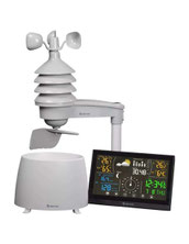 Estación Meteorológica de iniciación con sensor de temperatura, dirección y velocidad del viento (anenómetro), lluvia (pluviómetro). Incluye consola de datos.
