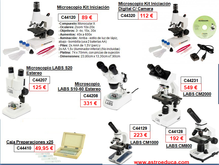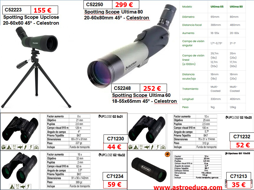Telescopios, Prismáticos, Oculares, Filtros, Adaptadores, Monturas, Trípodes, Cámaras CCD, Microscopios, Estaciones Meteorológicas, Cúpulas de Observatorio, Telescopios Terrestres, Telescopios Solares y todo tipo de accesorios para los amantes de la astronomía, microscopía y meteorología.