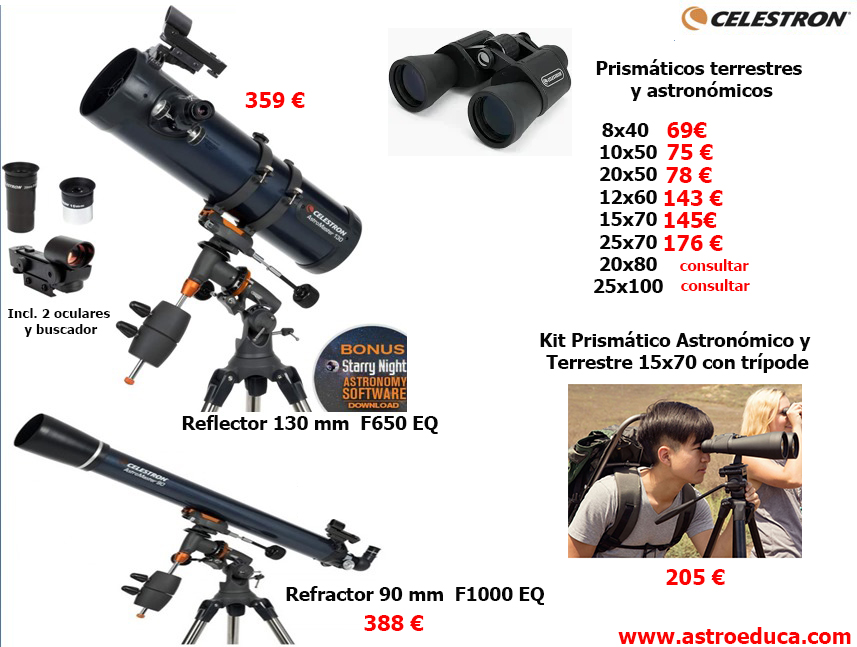 * Telescopios manuales y mecánicos. Para equipos Go To consultar tarifas especiales. >> RESERVA TU PLAZA<<