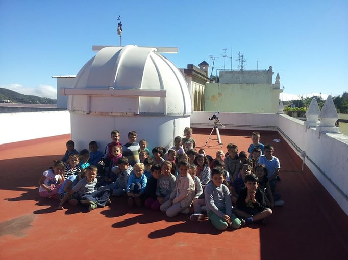 > Sesión de observación con telescopio. Observación solar con telescopios profesionales dotados de filtros si se realiza en horario lectivo o bien sesión de observación nocturna si la actividad es fuera de horario lectivo.